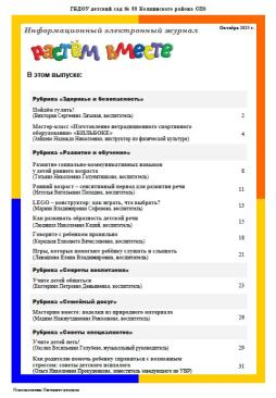 Предлагаем вашему вниманию Электронный информационный журнал «Растём вместе». Каждый номер журнала освещает актуальные вопросы воспитания, обучения, развития и оздоровления детей.